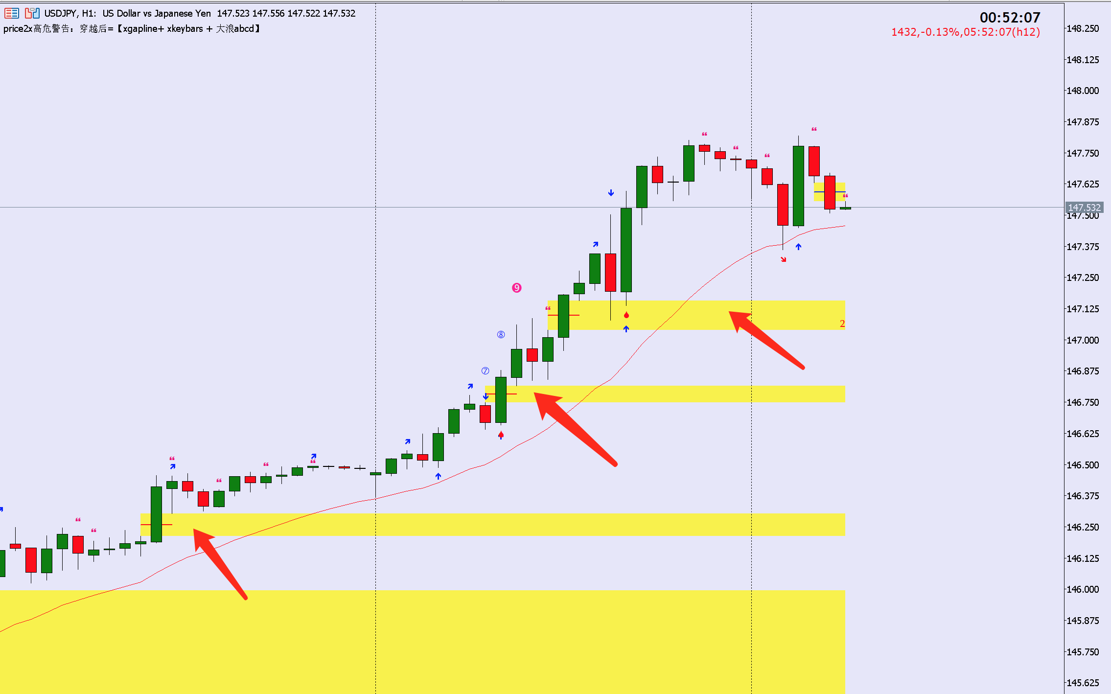 在不同的阶段,使用不同的交易信号,请在日线或者更大周期上测量,市场有指示意义,它所代表的意义都是区间突破。