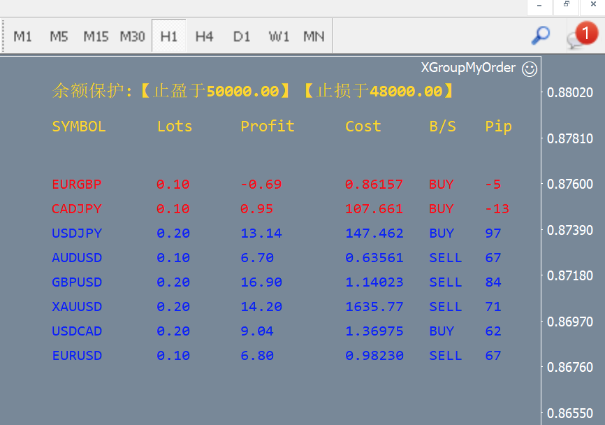 这是一款持仓保护与汇总工具,目前运行在MT4上。